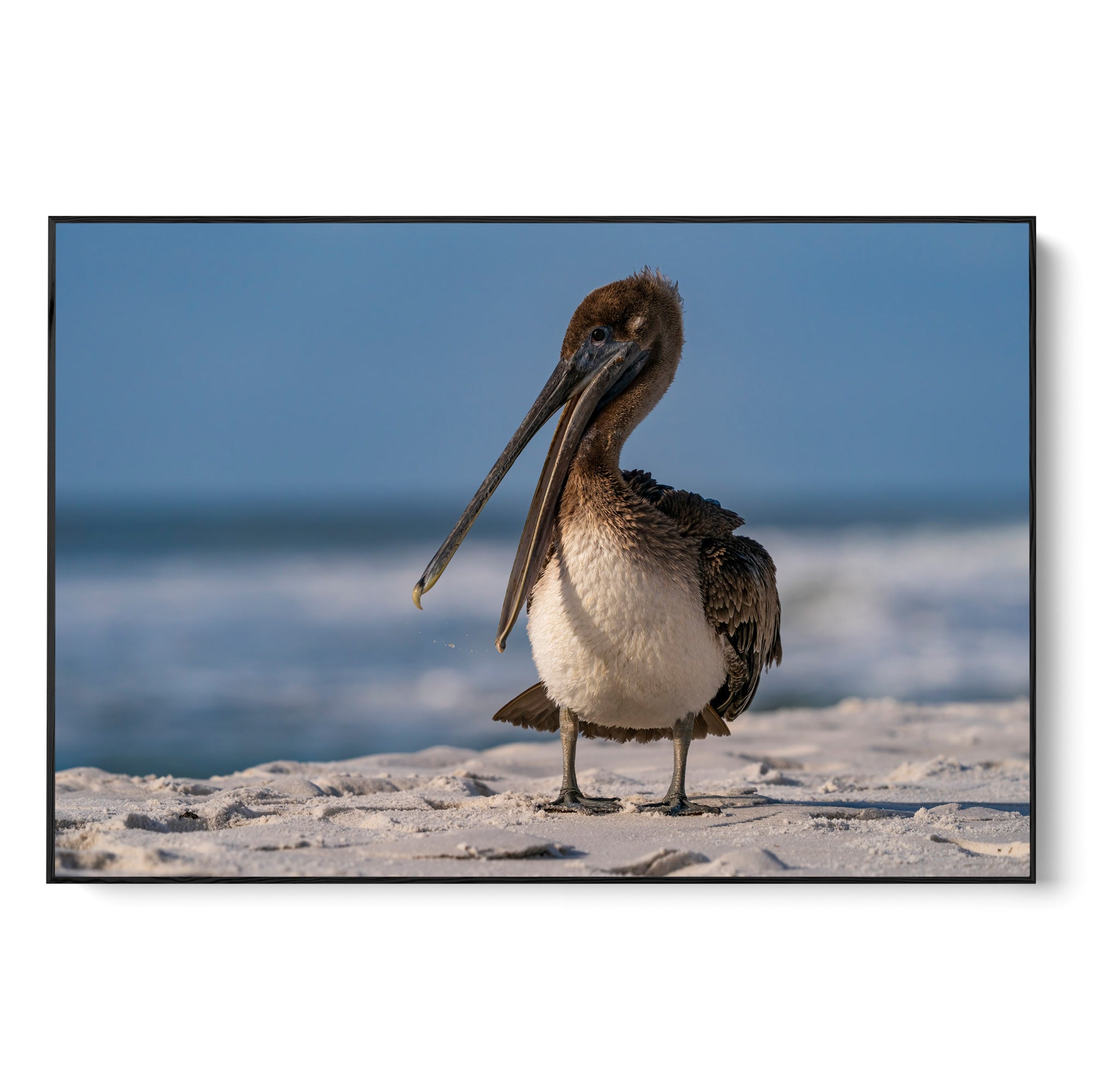 A brown pelican just cant hide its excitement enjoying another day on a beautiful Florida beach.