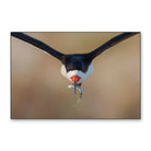 These mostly black birds, with white underbellies, use their oddly shaped and brilliantly colored beaks to skim the water’s surface for small fish while still flying/coasting. They move quite rapidly across the water in search of sustenance for not only themselves, but for the rest of the family back at their nest.