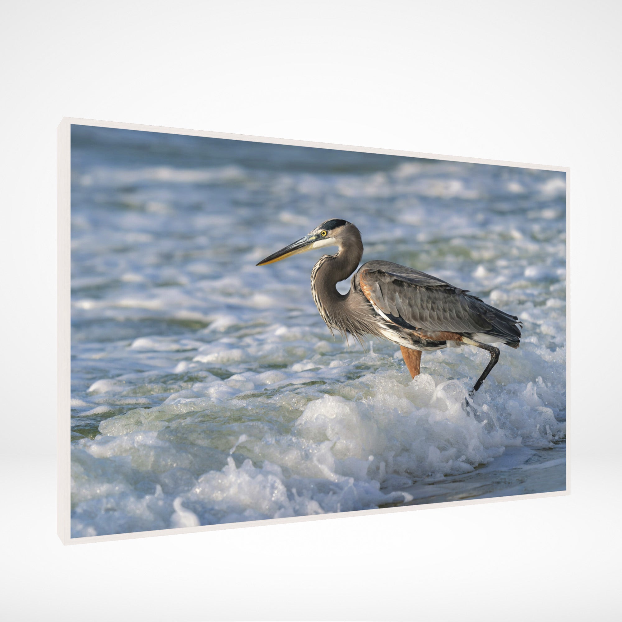 This great blue heron begins the day by entering the surf in search of breakfast.