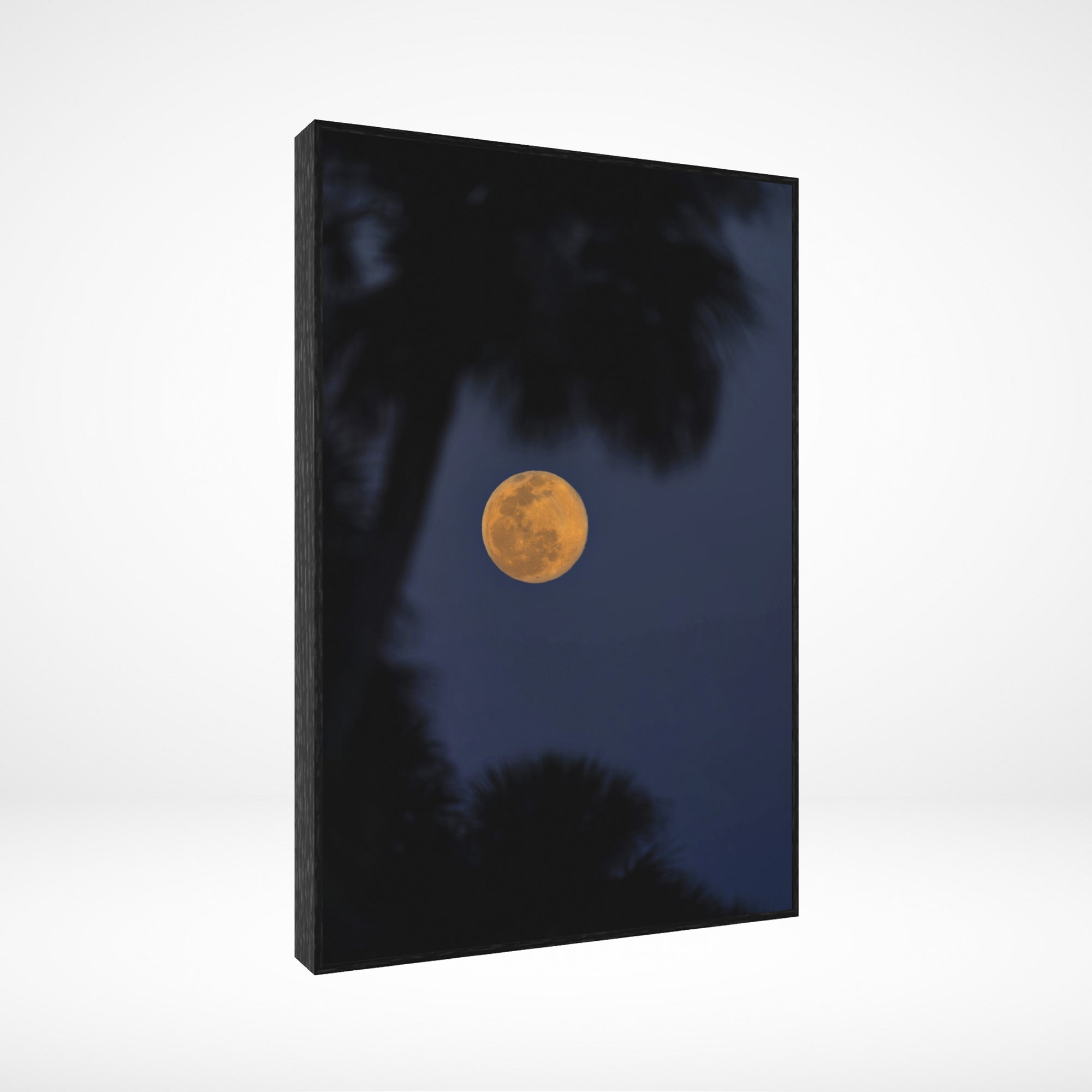 A stoic palm tree creates a peaceful silhouette in the moon’s glow.