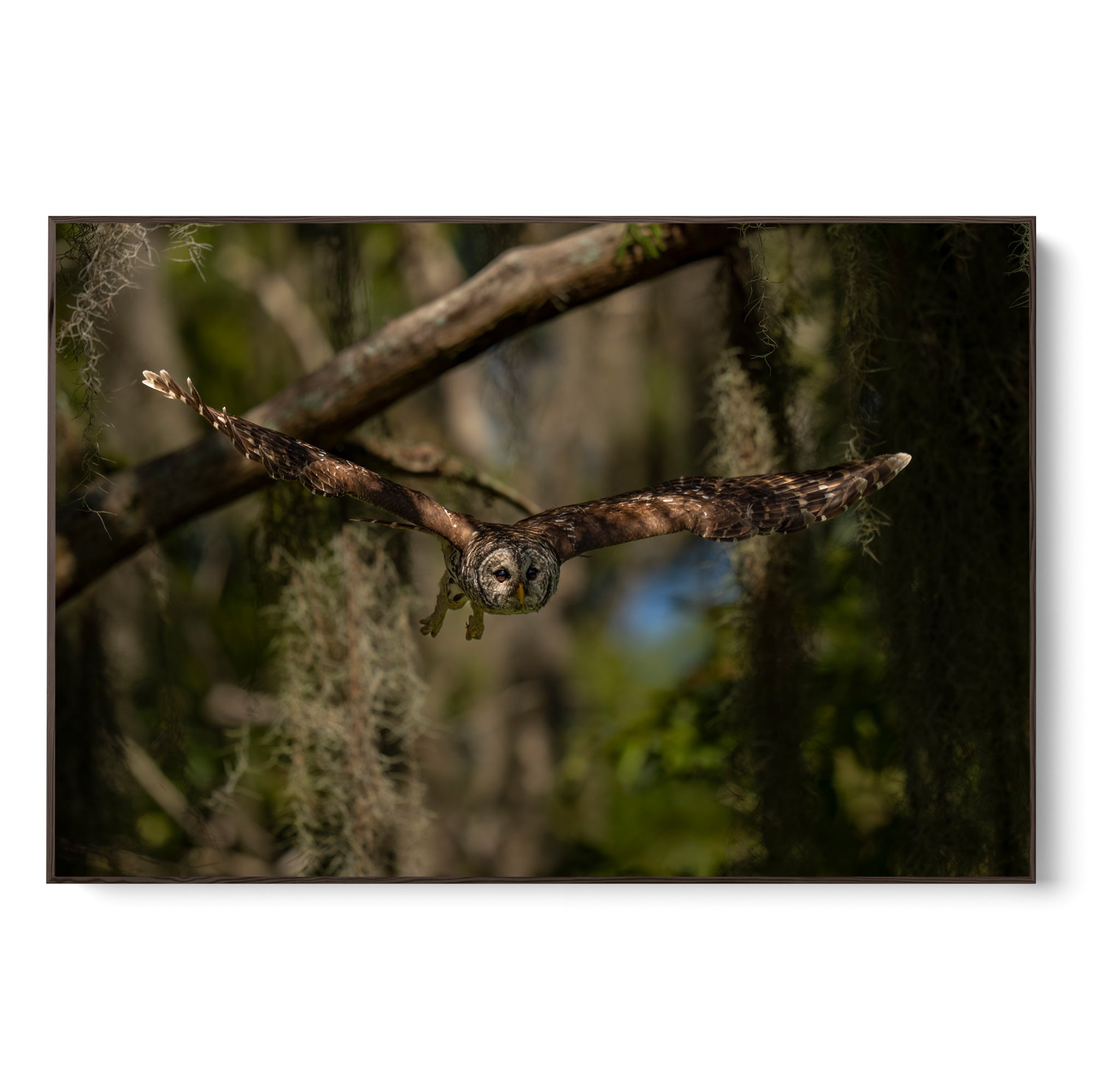 Owls fly in complete silence, and this barred owl is no exception.