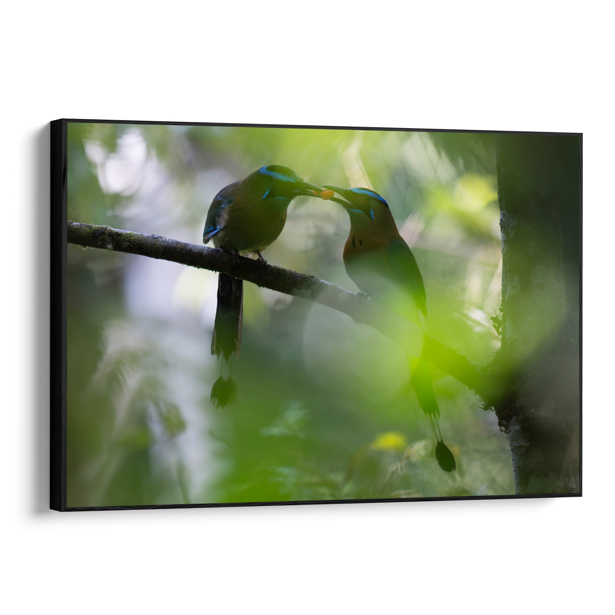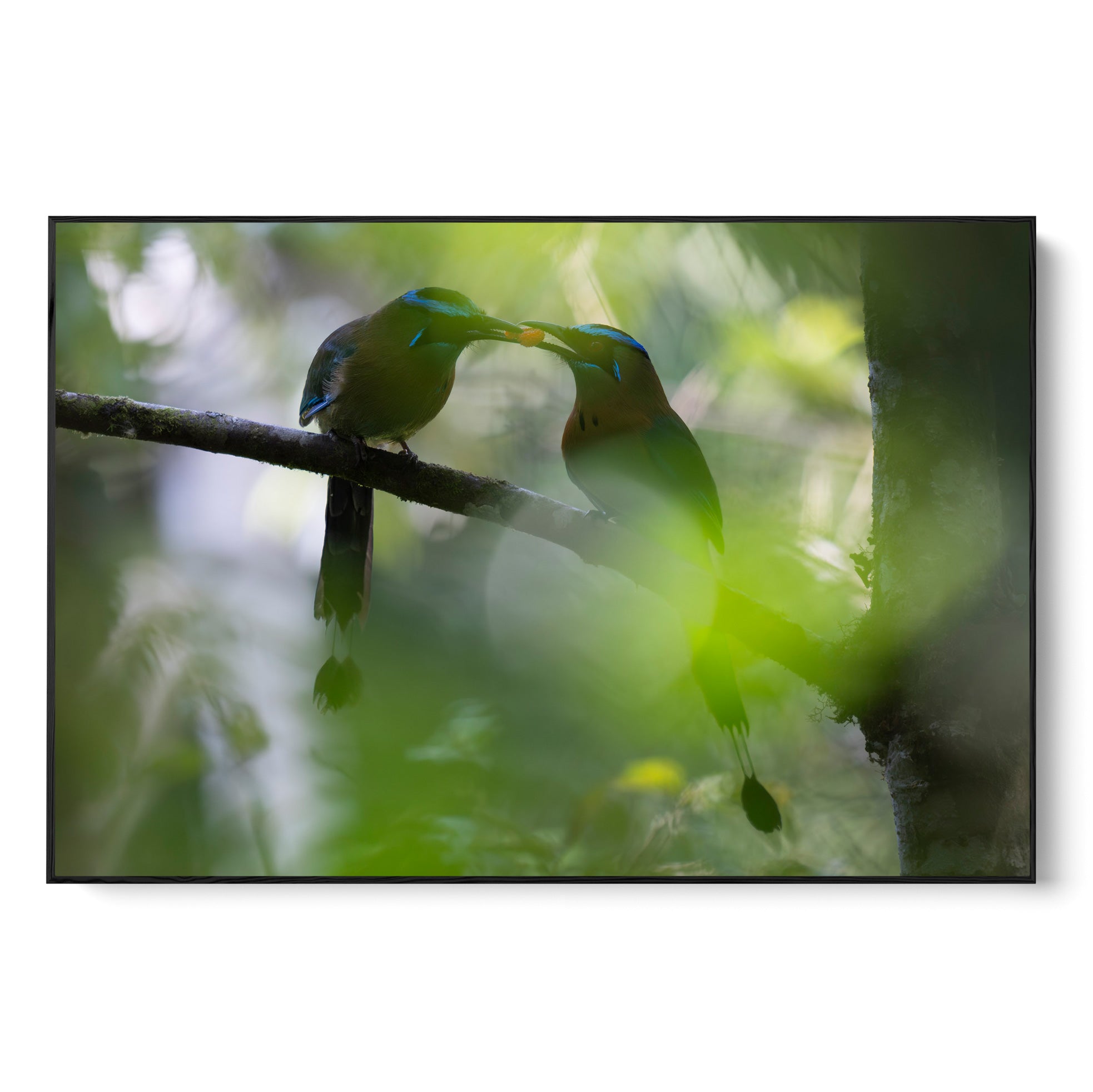 While hiking through the cloud forests of Monteverde, we spotted a female Lesson's motmot perched on a branch. Soon after spotting her, a male appeared beside her—offering a berry.