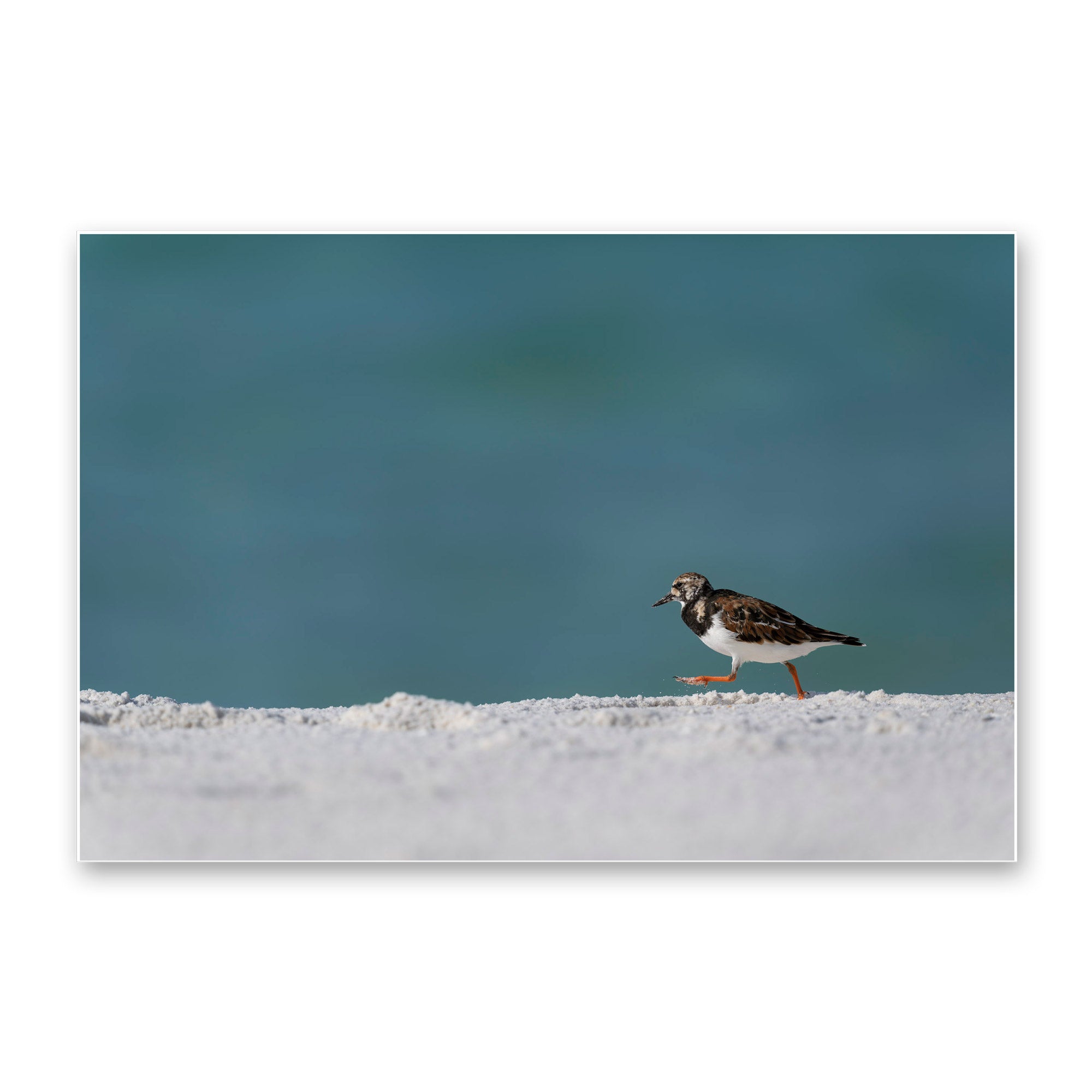 “This ruddy turnstone appeared, to me, to be marching along the surf in search of its next meal. With each step, grains of sand flew from its feet, indistinguishable from cane sugar. Of course, as much as we love the sugar-white sands of the gulf, the true star of this moment was the gulf itself. This never-to-be-repeated mixture of greens and blues created a majestic backdrop for this beautiful bird’s daily march.”