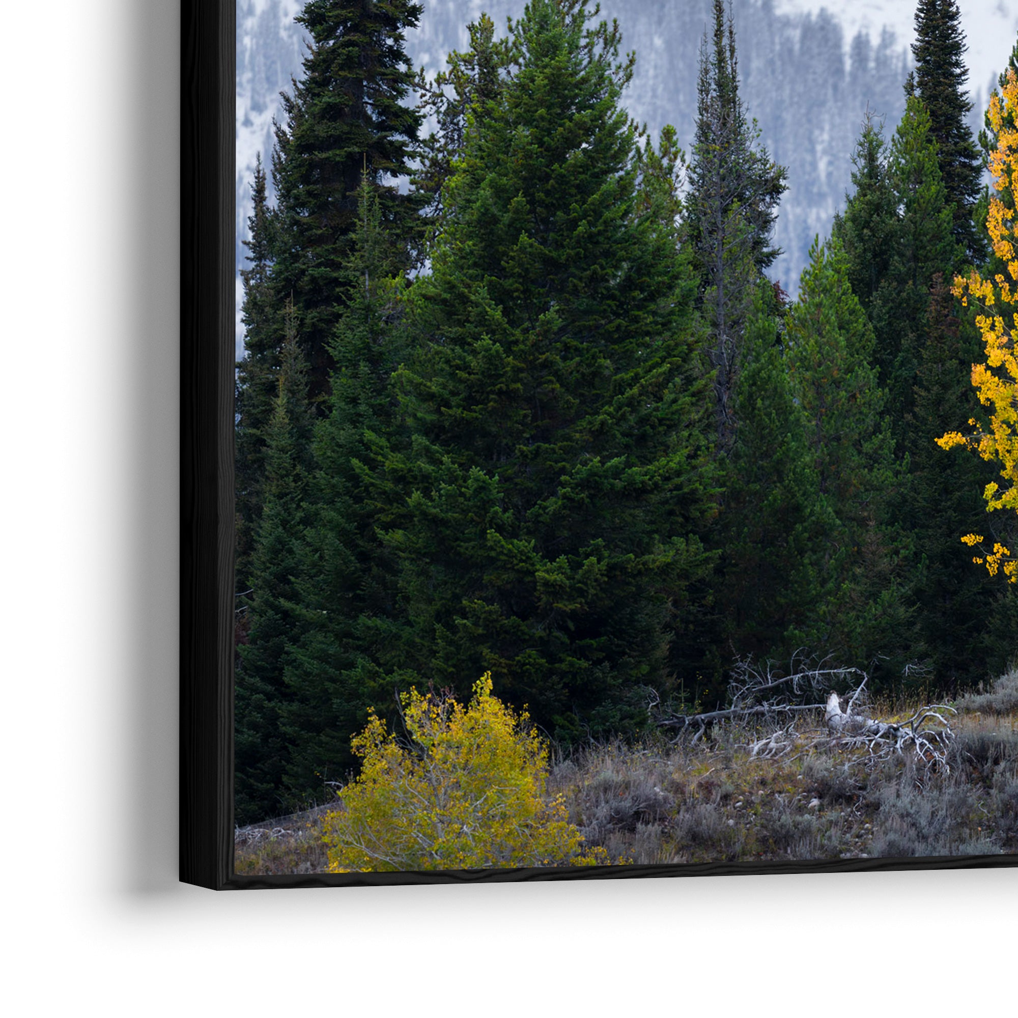 Feather frames (pictured) have no buffer between the print and the frame, whereas floating frames have a small gap, creating a floating effect for the capture within the frame.