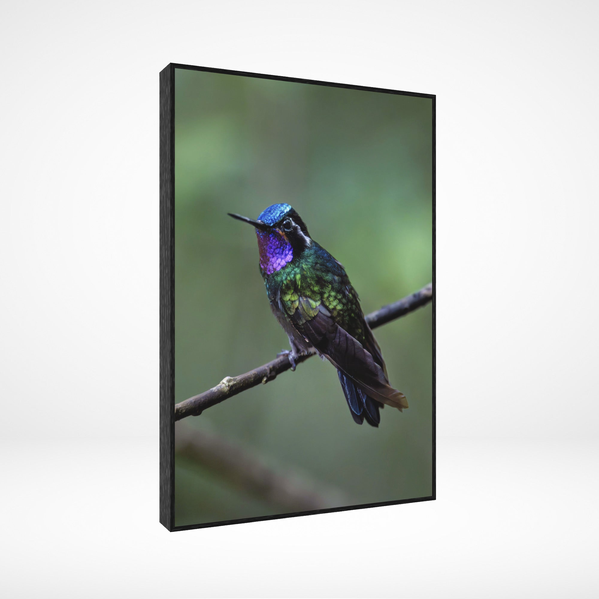 A purple-throated mountain-gem pauses after flitting about in search of sweet nectar.