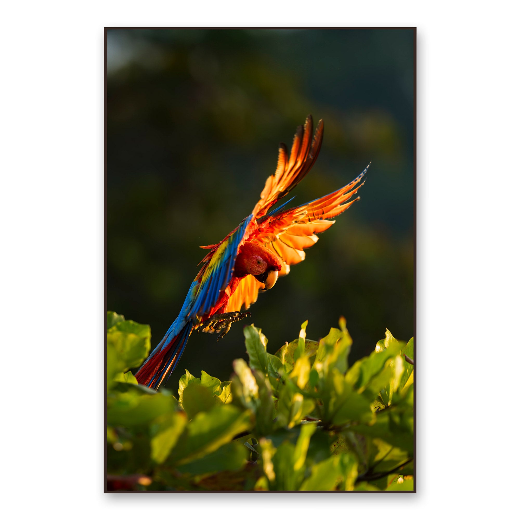 Feather frames (pictured) have no buffer between the print and the frame, whereas floating frames have a small gap, creating a floating effect for the capture within the frame.